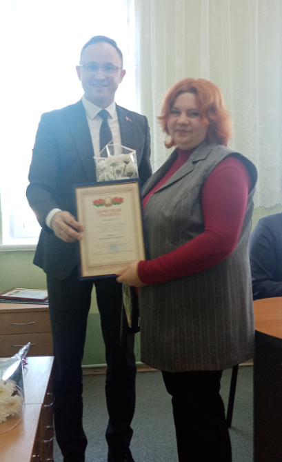 Приятным моментом итогового собрания стало награждение работников нашего учреждения, достигших высоких результатов в работе в 2025 году. Почетной грамотой УЗ «Могилевский областной центр гигиены, эпидемиологии и общественного здоровья» награждена помощник врача-гигиениста Екатерина Сергеевна Радевич. Благодарностью вышестоящей организации отмечена фельдшер-лаборант Тамара Петровна Ковалева. Почетной грамоты от руководства УЗ «Дрибинский райЦГЭ» удостоен заведующий хозяйством учреждения Петр Алексеевич Юркевич. Вручая заслуженные награды и адресуя слова поздравлений, Максим Николаевич пожелал дальнейшей успешной работы в деле обеспечения санитарно-эпидемиологического благополучия населения Дрибинского района.
